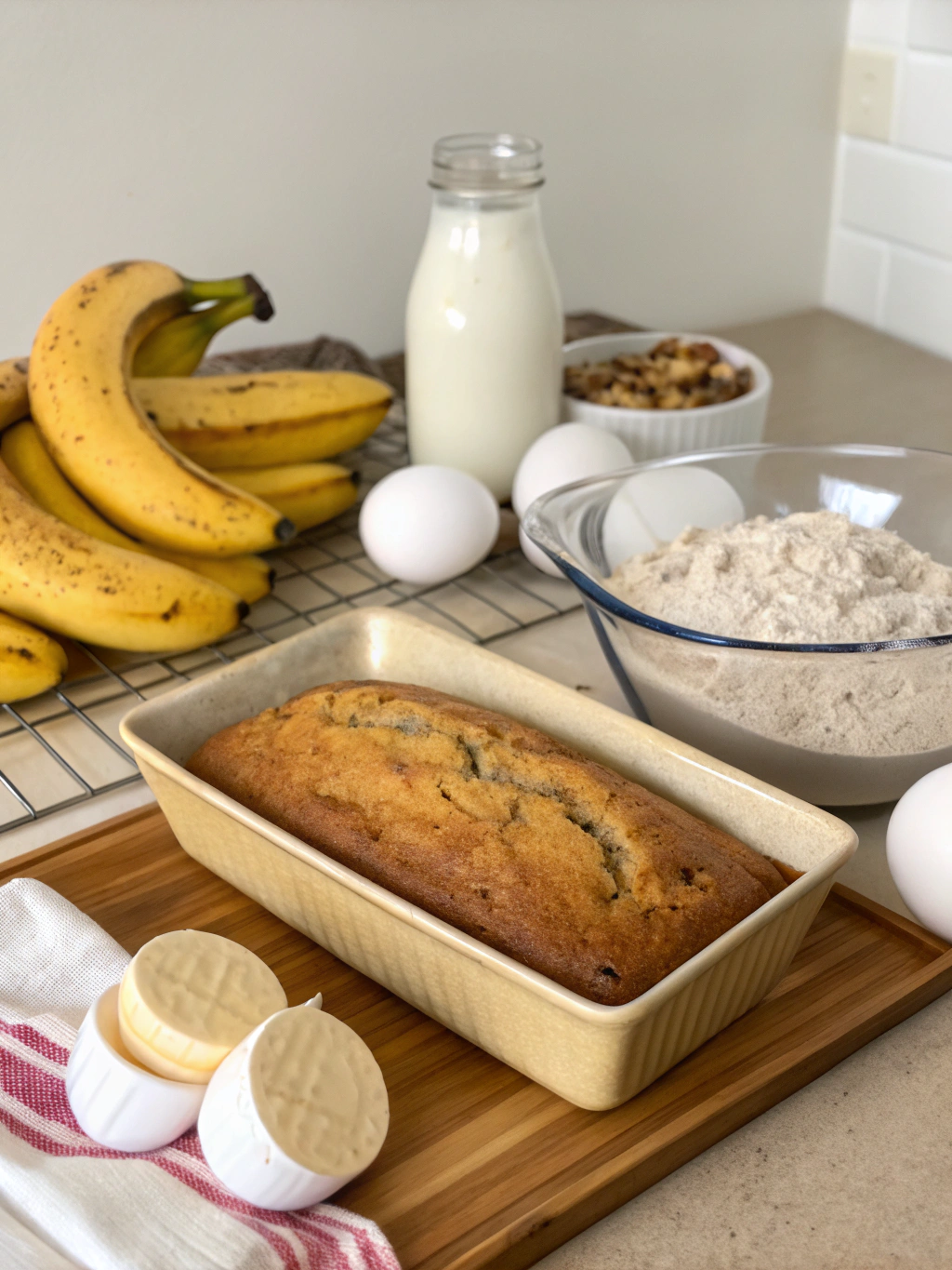 • Underbaking: Banana bread should be thoroughly baked. A toothpick should come out with a few moist crumbs, not wet batter.